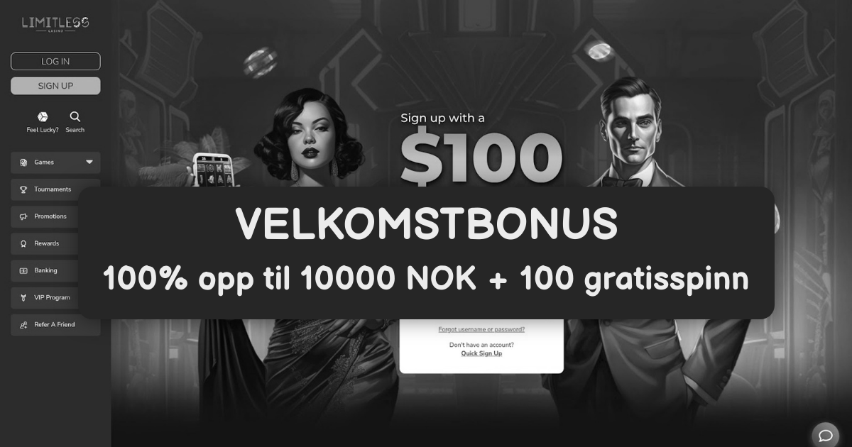 Nei. Indikasjoner tyder på at Norge er et restriksjonsland for Limitless Casino. Mange kampanjer, som no deposit bonus og «no rules»-bonuser, er derfor ikke ment for norske kontoer. Norske IP-adresser kan oppleve blokkering ved registrering/innlogging, og norsk språk/støtte er ikke oppgitt.